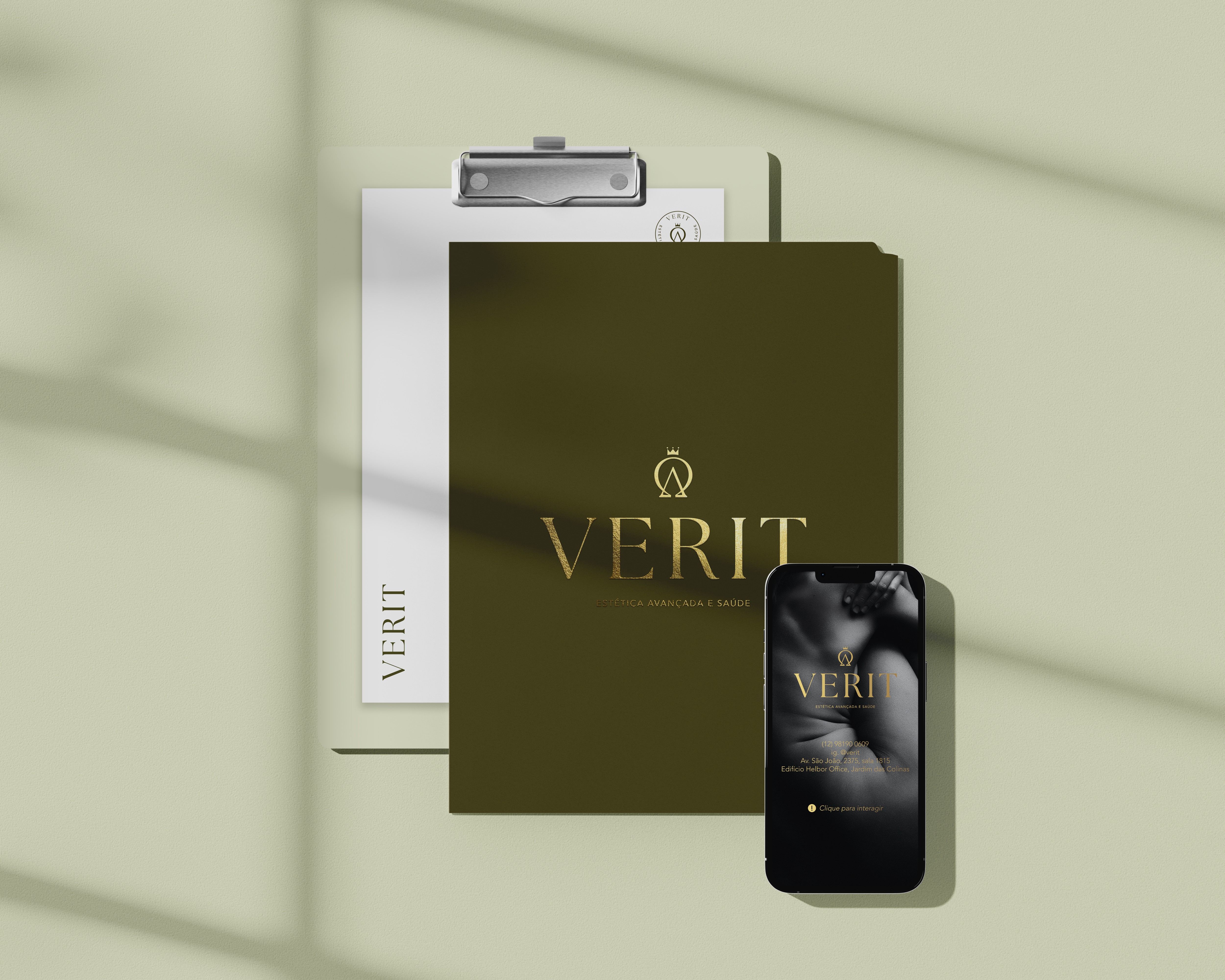 A Verit é uma clínica de estética que combina tecnologia avançada, cuidado personalizado e sofisticação para transformar tratamentos estéticos em experiências únicas. O nome deriva do latim veritas — verdade — refletindo os valores centrais da marca: transparência, autenticidade e honestidade. Curto, sofisticado e fácil de pronunciar, o nome posiciona a clínica com autoridade e modernidade.